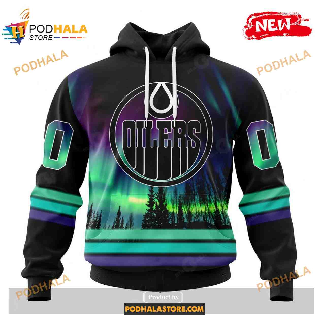 Custom NHL Edmonton Oilers With Northern Lights Shirt Hoodie 3D