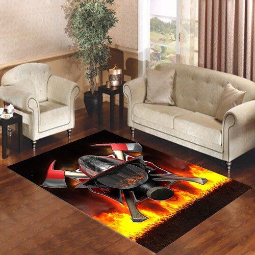 - Firefighter Logo Red Flames Living Room Carpet Rugs Area Rug For Living Room Bedroom Rug Home Decor great for any decor, adds texture to the floor and complements any decor.