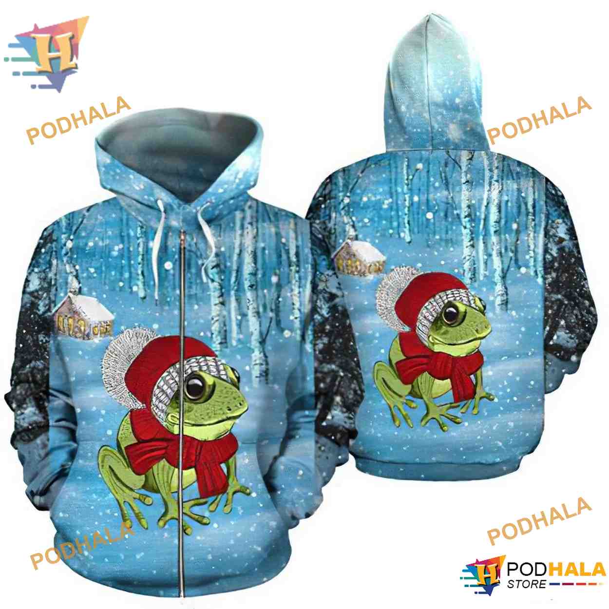 Frog Snow Blue Unisex All Over Printed 3D Hoodie Sweatshirt