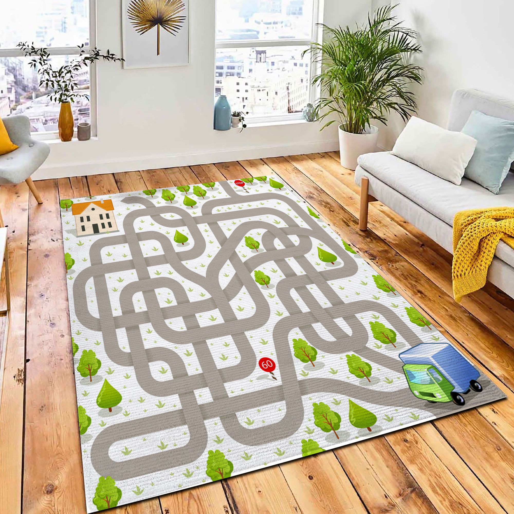 - Funny Vector Maze Game Delivery Area Rug Carpet Kid Play Rug Home Decor great for any decor, adds texture to the floor and complements any decor.