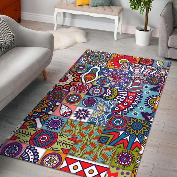 Mandala Tile Bohemian Pattern Area Rug Bohemian Rug Living Room Decor