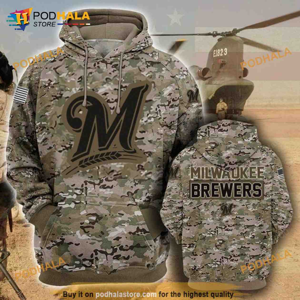 Milwaukee Brewers Camouflage Veteran 3D Hoodie