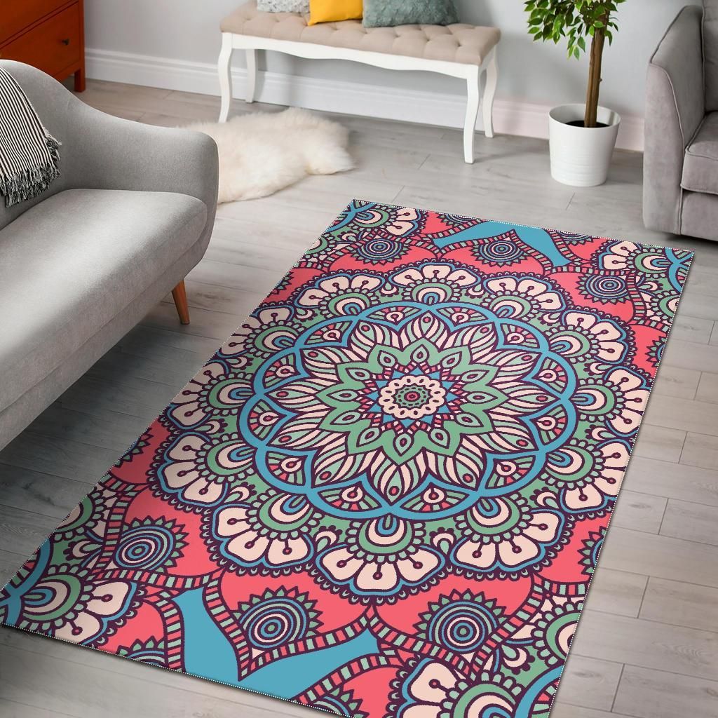 - Pastel Mandala Bohemian Pattern Area Rug Bohemian Rug Home Decor great for any decor, adds texture to the floor and complements any decor.
