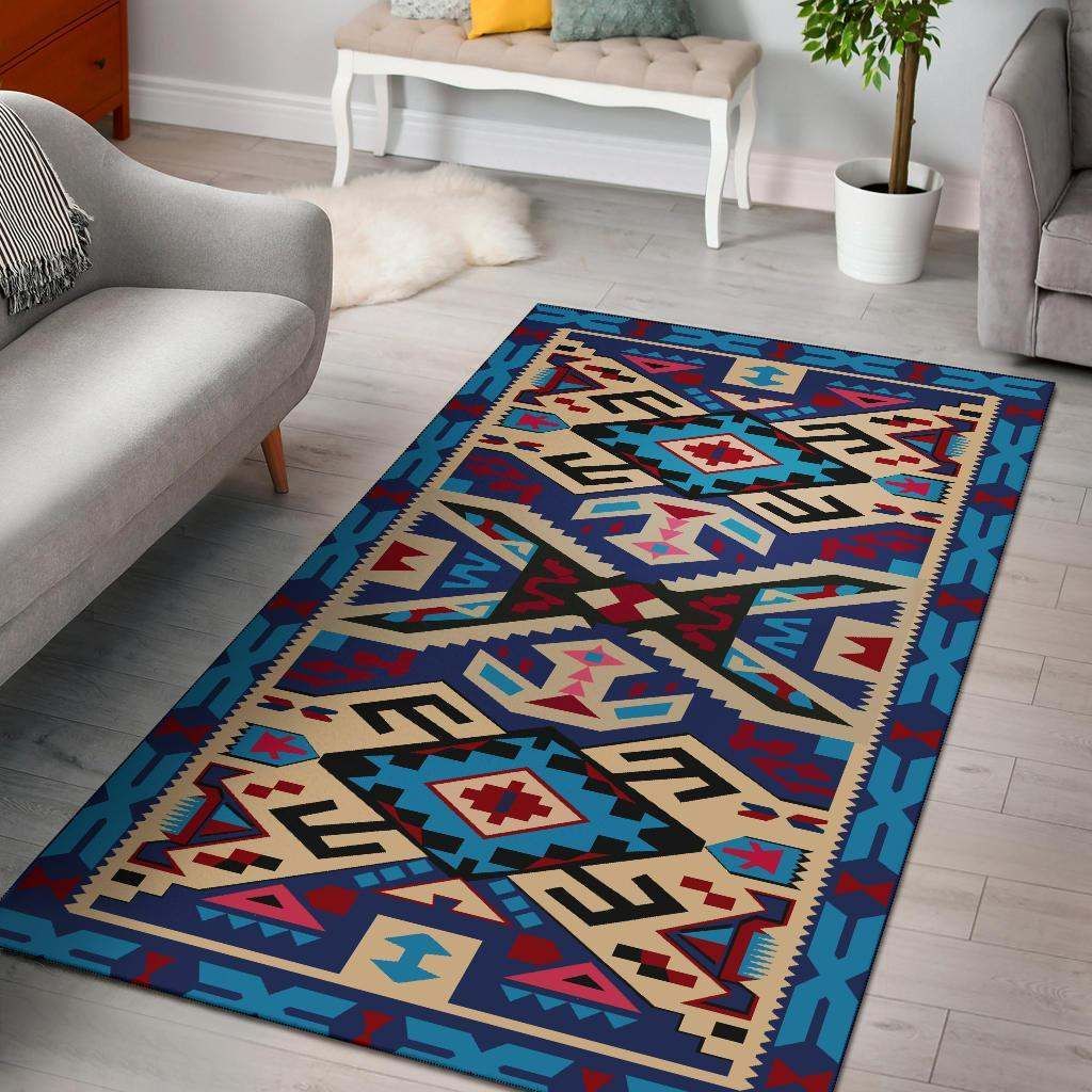 - Pink Blue Native Tribes Pattern Native American Area Rug Carpet Area Rug For Living Room Bedroom Rug Home Decor great for any decor, adds texture to the floor and complements any decor.