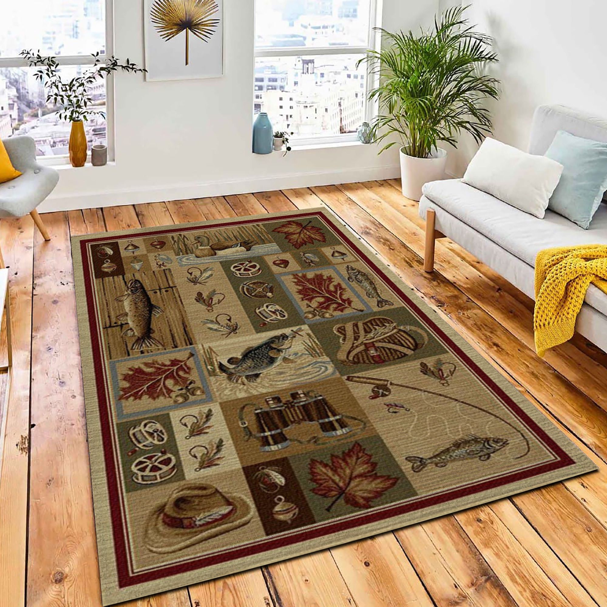 - Rather Be Fishing Area Rug Rustic Cabin & Lodge Area Rug Living Room Rug great for any decor, adds texture to the floor and complements any decor.