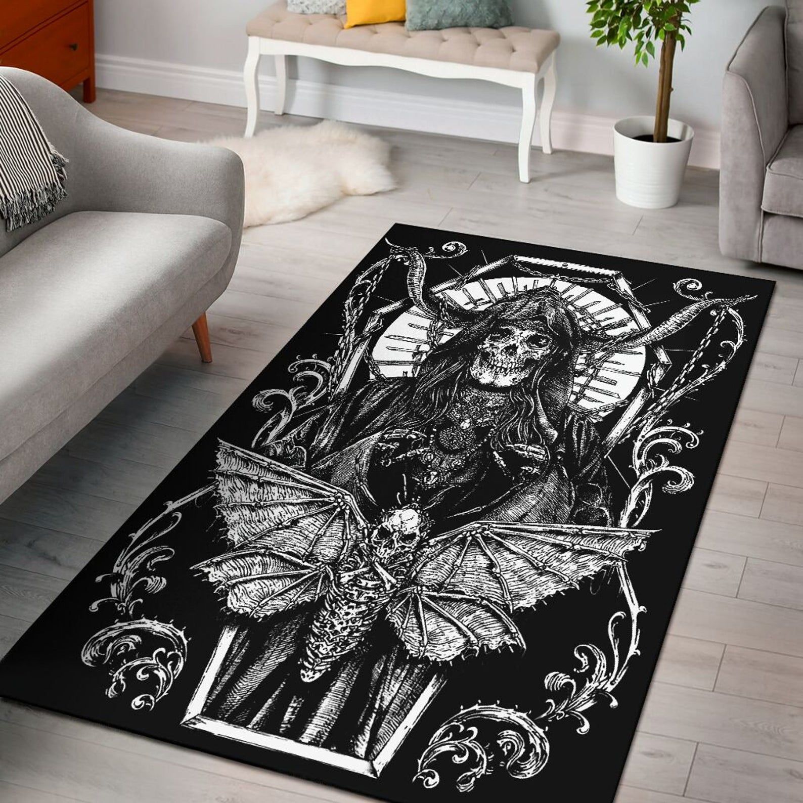 - Skull Bee Death Rug Stylish Design Living Room Rug great for any decor, adds texture to the floor and complements any decor.