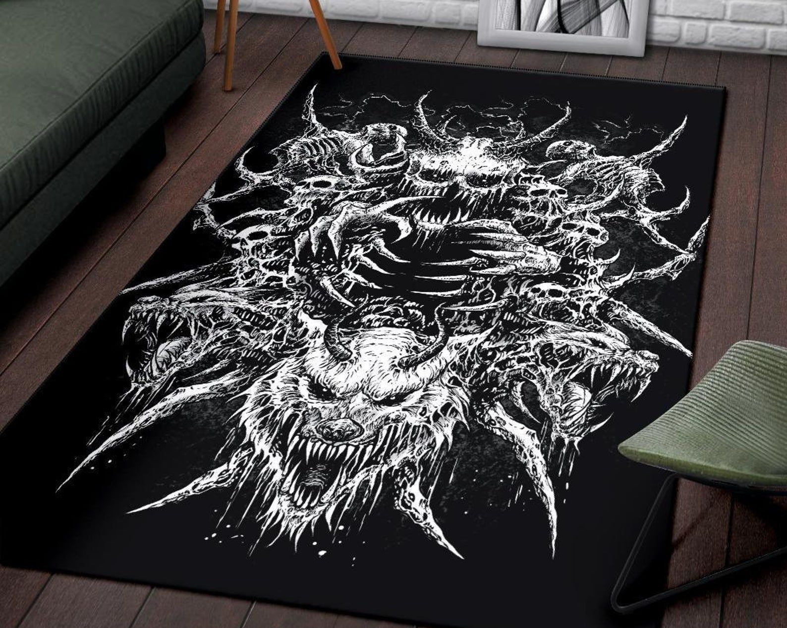 Skull Demon Wolf Area Rug Large Print Original Black And White Gothic Home Decor