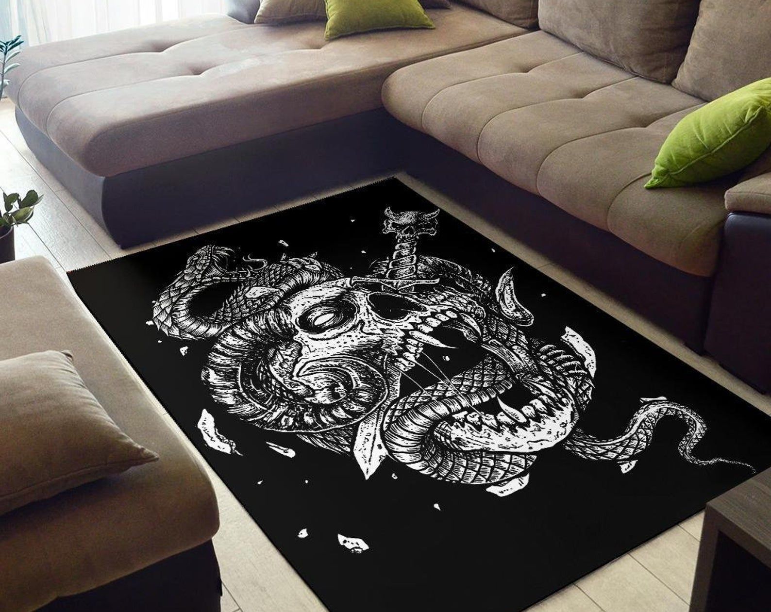 Skull Exploding Demon Dagger Serpent Area Rug Gothic Home Decor