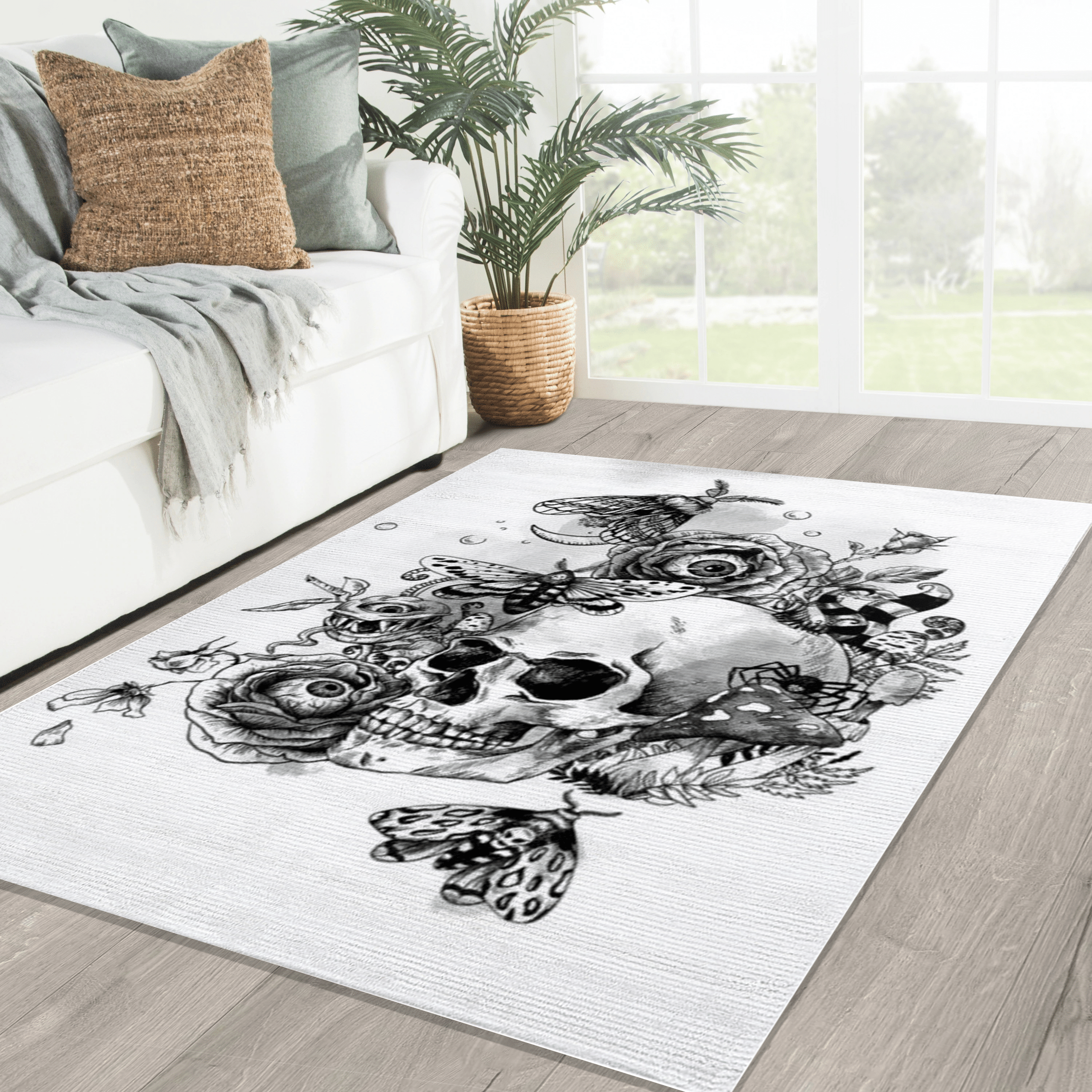 - Skull Illustration Eyeball Rose Skull And Flowers Memento Mori Dark Rug Living Room Home Decor great for any decor, adds texture to the floor and complements any decor.