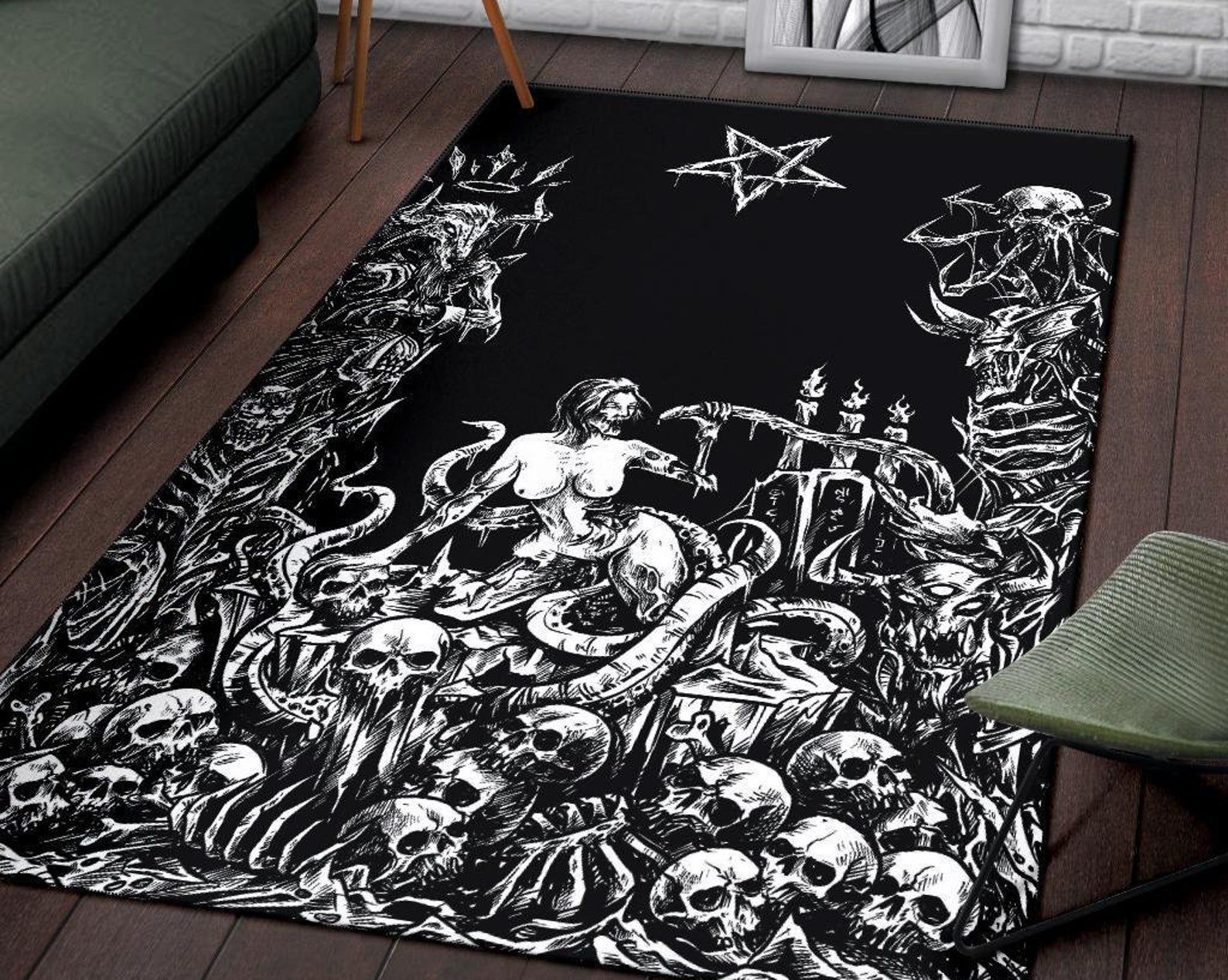 - Skull Satanic Demon Satanic Pentagram Lust Of The Damned Area Rug Gothic Home Decor great for any decor, adds texture to the floor and complements any decor.