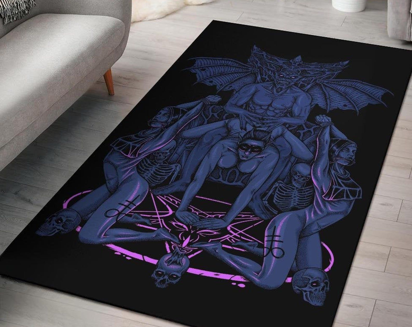 Skull Satanic Pentagram Baphomet Demon Bondage Throne Area Rug Sexy Blue Pink Gothic Home Decor
