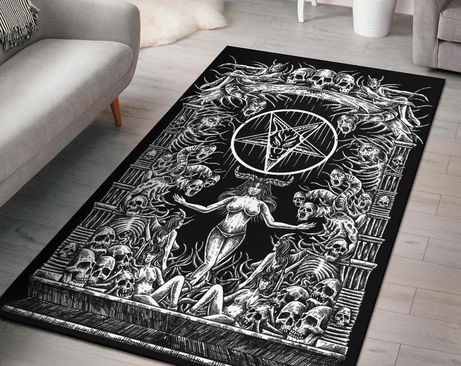 Skull Satanic Pentagram Demon Shrine Area Rug Gothic Home Decor