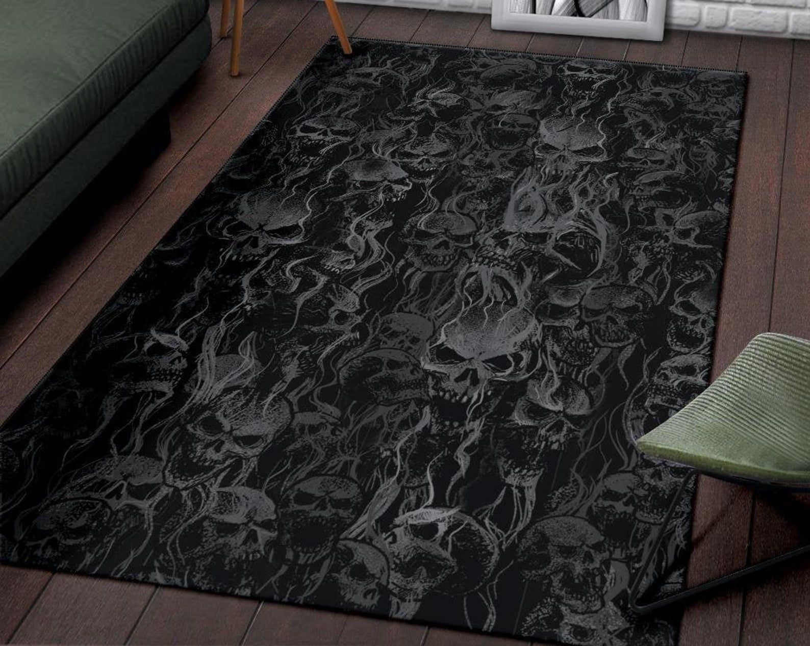 - Smoke Skull Area Rug Dark Gothic Home Decor great for any decor, adds texture to the floor and complements any decor.