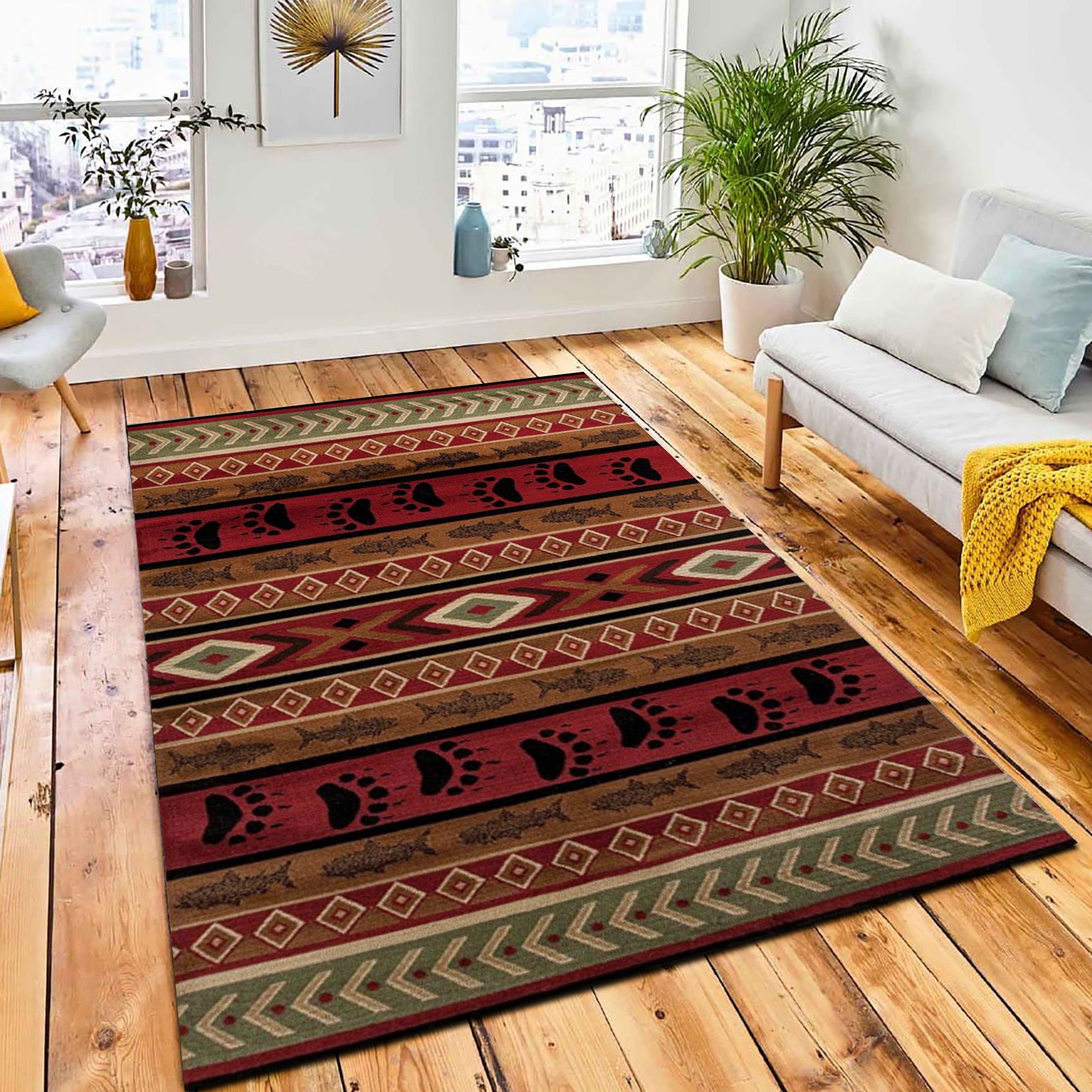 Southwest Bear Paw Area Rug Rustic Cabin & Lodge Area Rug Living Room Rug