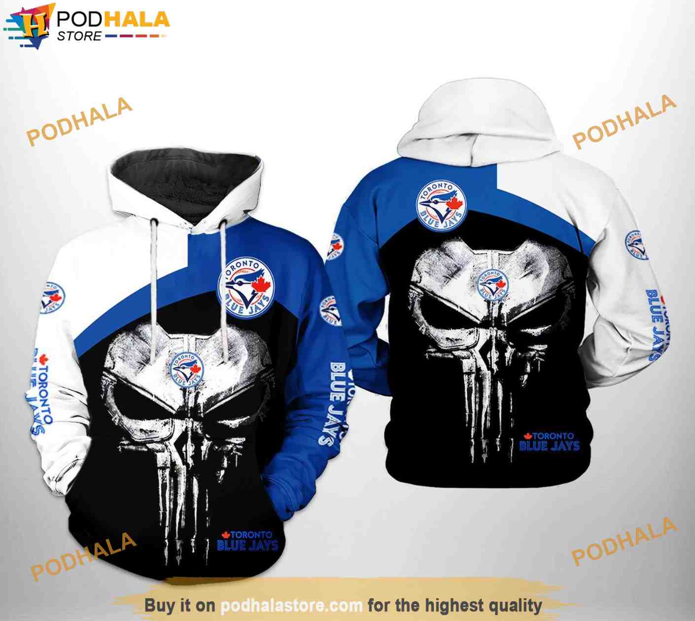 Toronto Blue Jays MLB Skull Punisher 3D Hoodie, MLB Clothing For Fans