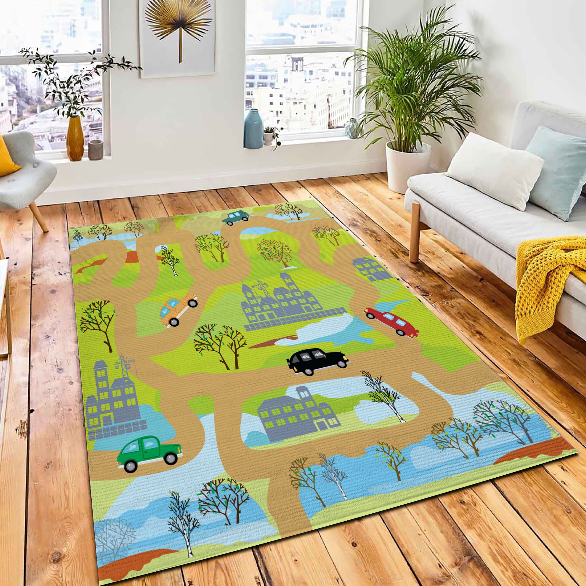 - Vector Seamless Pattern Cars Road Area Rug Carpet Kid Play Rug Home Decor great for any decor, adds texture to the floor and complements any decor.