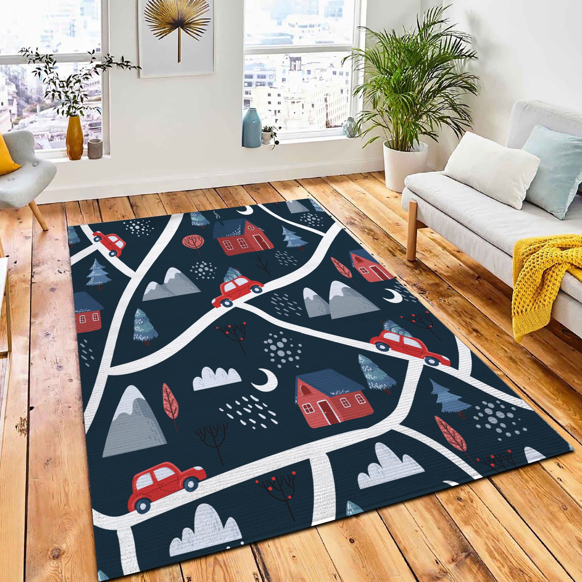 - Winter Landscape Night Red Cars Area Rug Nursery Rug Home Decor great for any decor, adds texture to the floor and complements any decor.